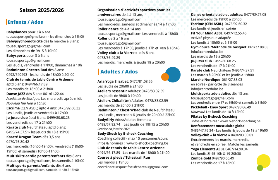 Pour rester au courant des dernières nouveautés et actualités concernant votre centre sportif local.